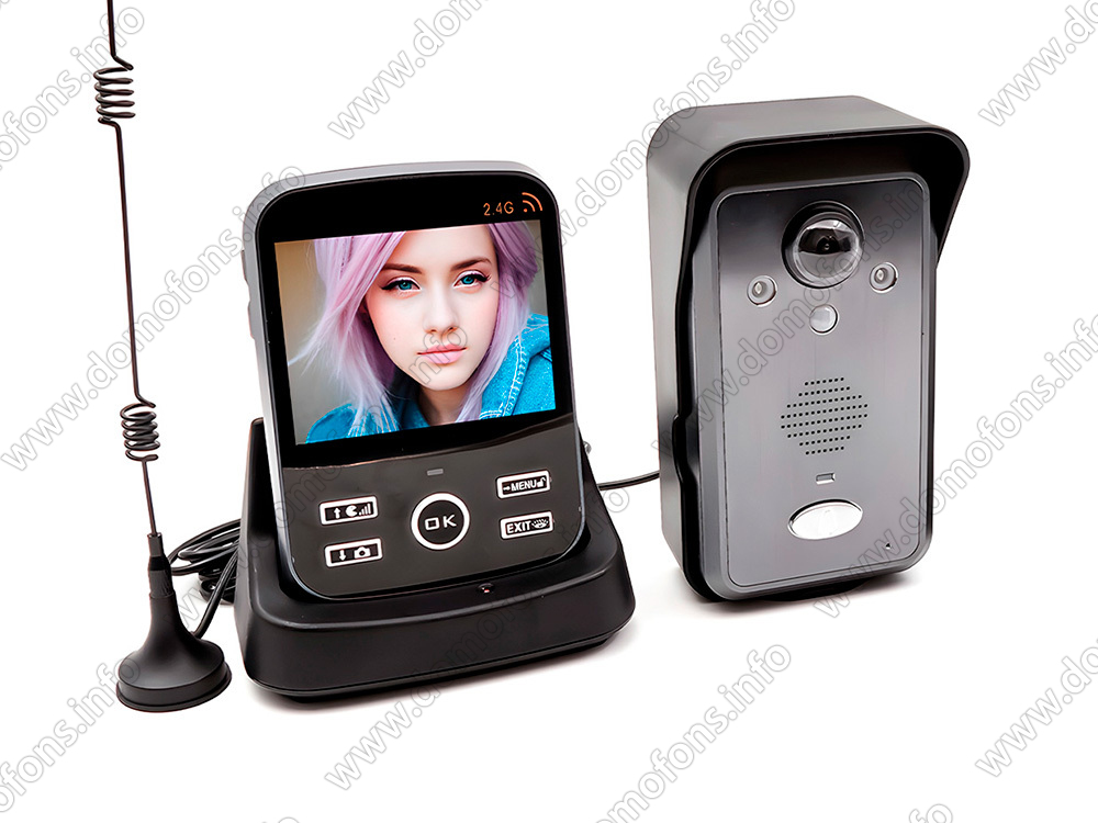 Беспроводная передача аудио-видеосигнала. Сигнал передается по радиоканалу на частоте 2,4 ГГц, благодаря чему Вам не потребуется прокладывать провода между вызывной панелью видео-трубкой.