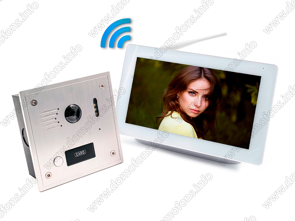 Беспроводной комплект Wi Fi домофона и вызывная панель «SkyNet-Tuya 800 (1+0)» Беспроводной видеодомофон и беспроводная антивандальная вызывная панель C-81223 с RFID-картой. Дальность до 300м.